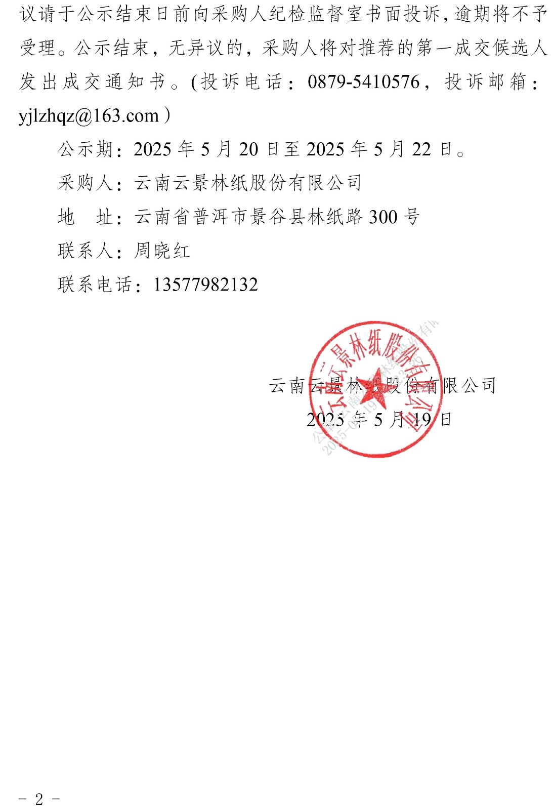 云南云景林紙股份有限公司地表水現(xiàn)狀監(jiān)測(cè)服務(wù)單位邀請(qǐng)?jiān)儽炔少?gòu)成交候選人公示