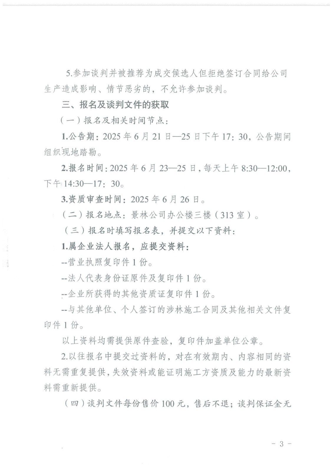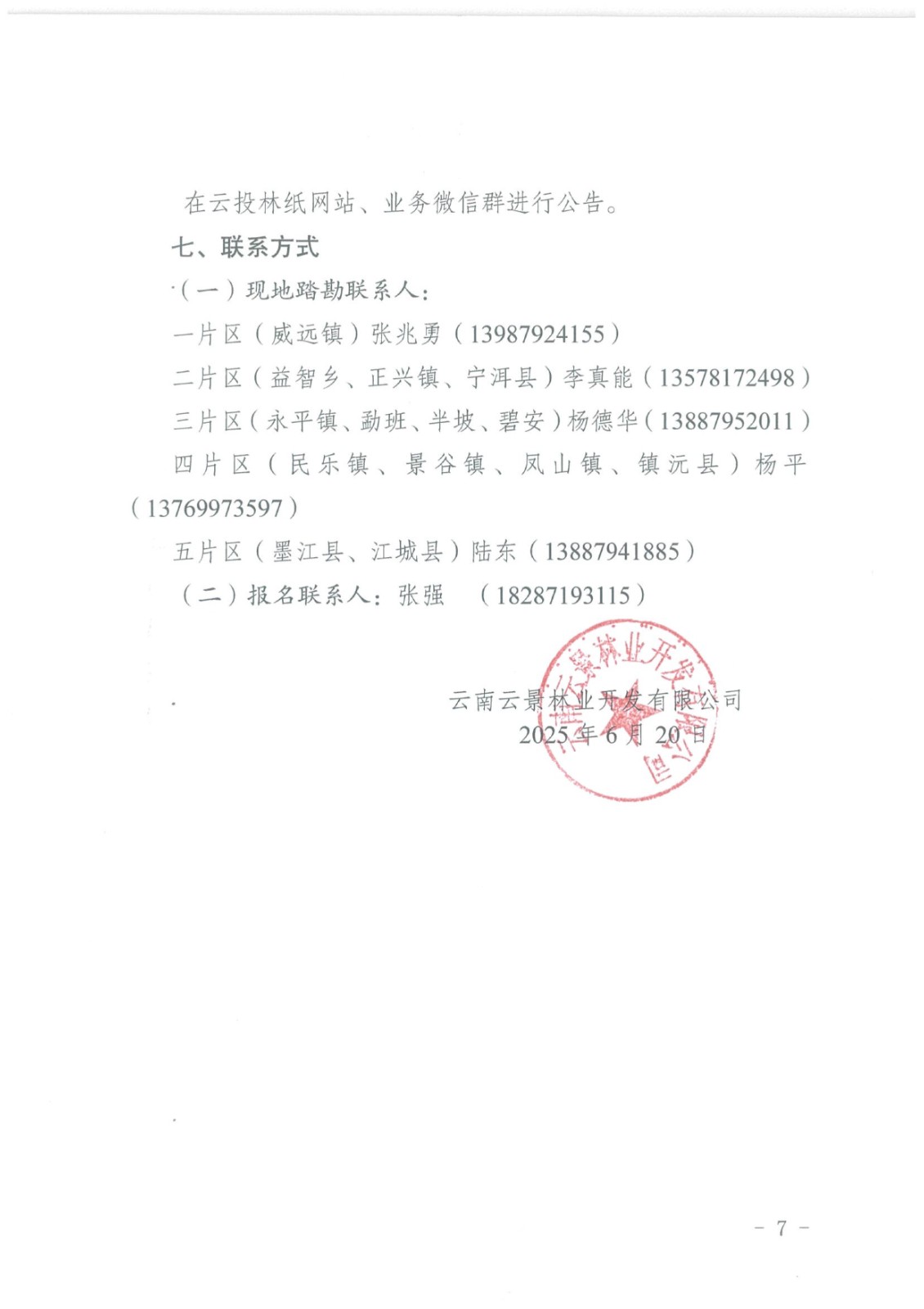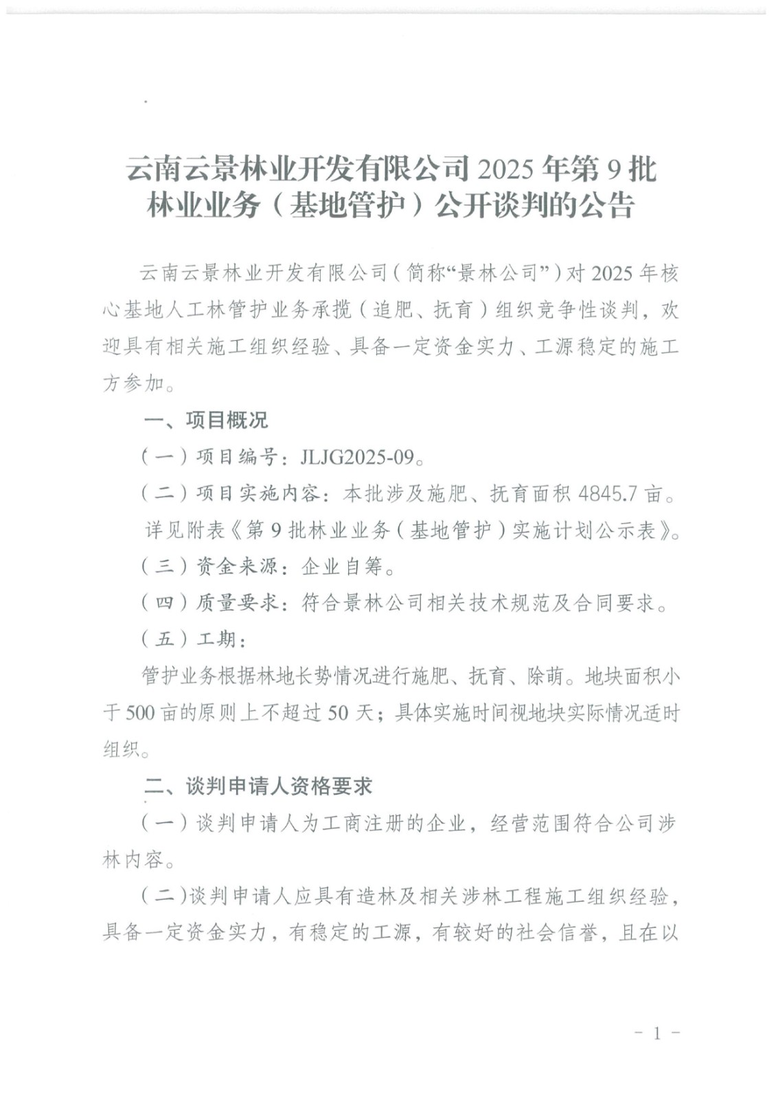 云南云景林業(yè)開發(fā)有限公司2025年第9批林業(yè)業(yè)務(wù)(基地管護(hù))公開談判的公告