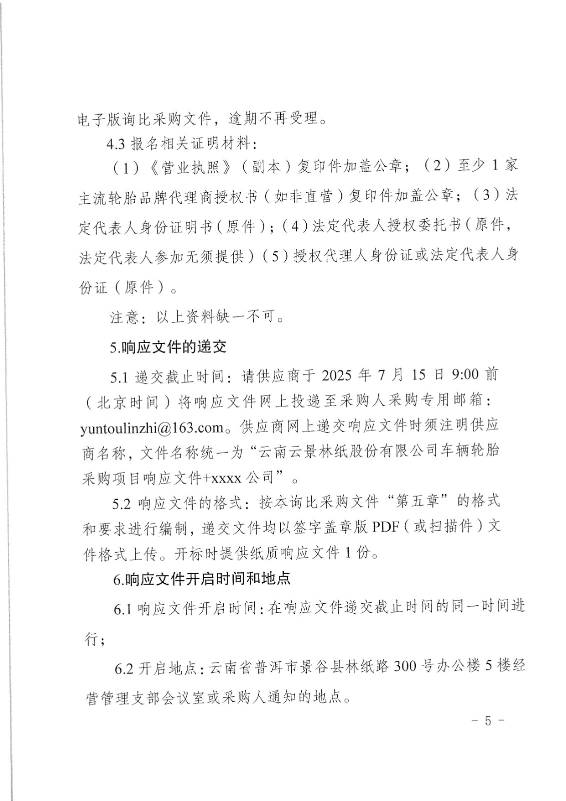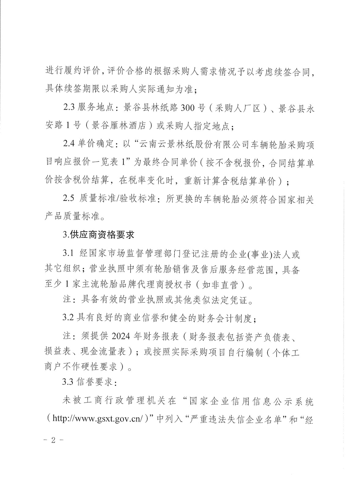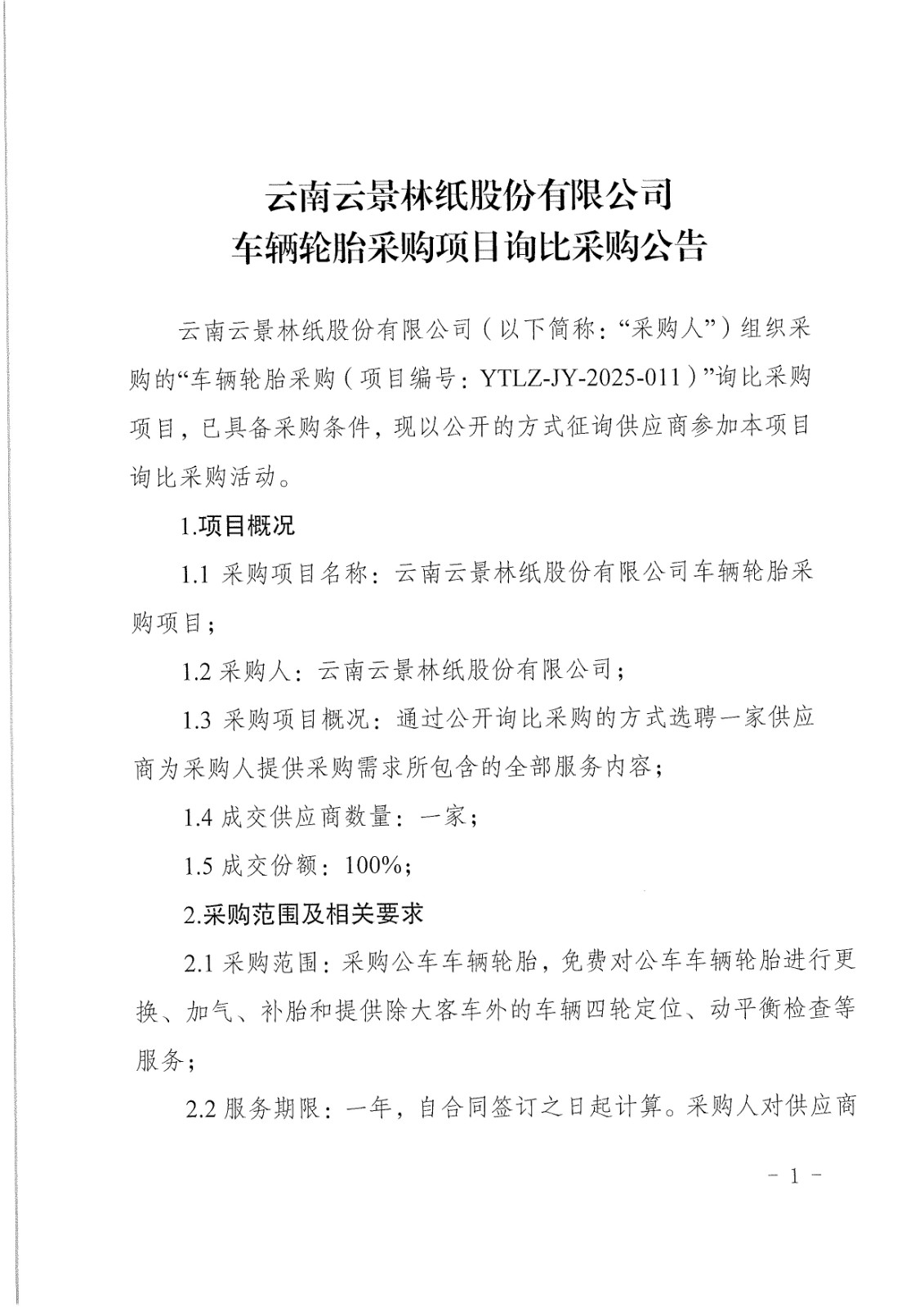 云南云景林紙股份有限公司車輛輪胎采購項目詢比采購公告