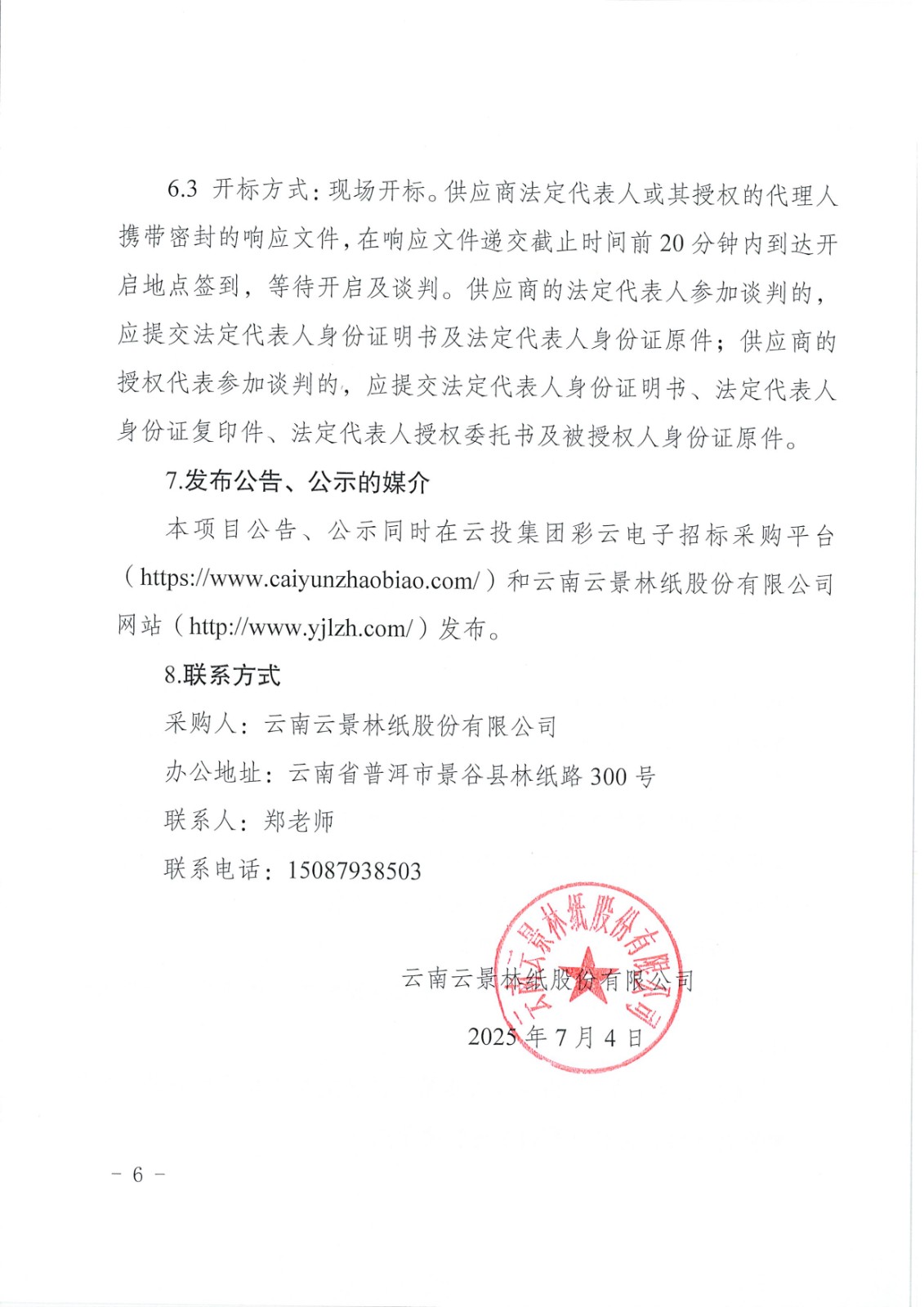 云南云景林紙股份有限公司1#紙機揚克缸表面研磨噴涂項目(二次)談判公告