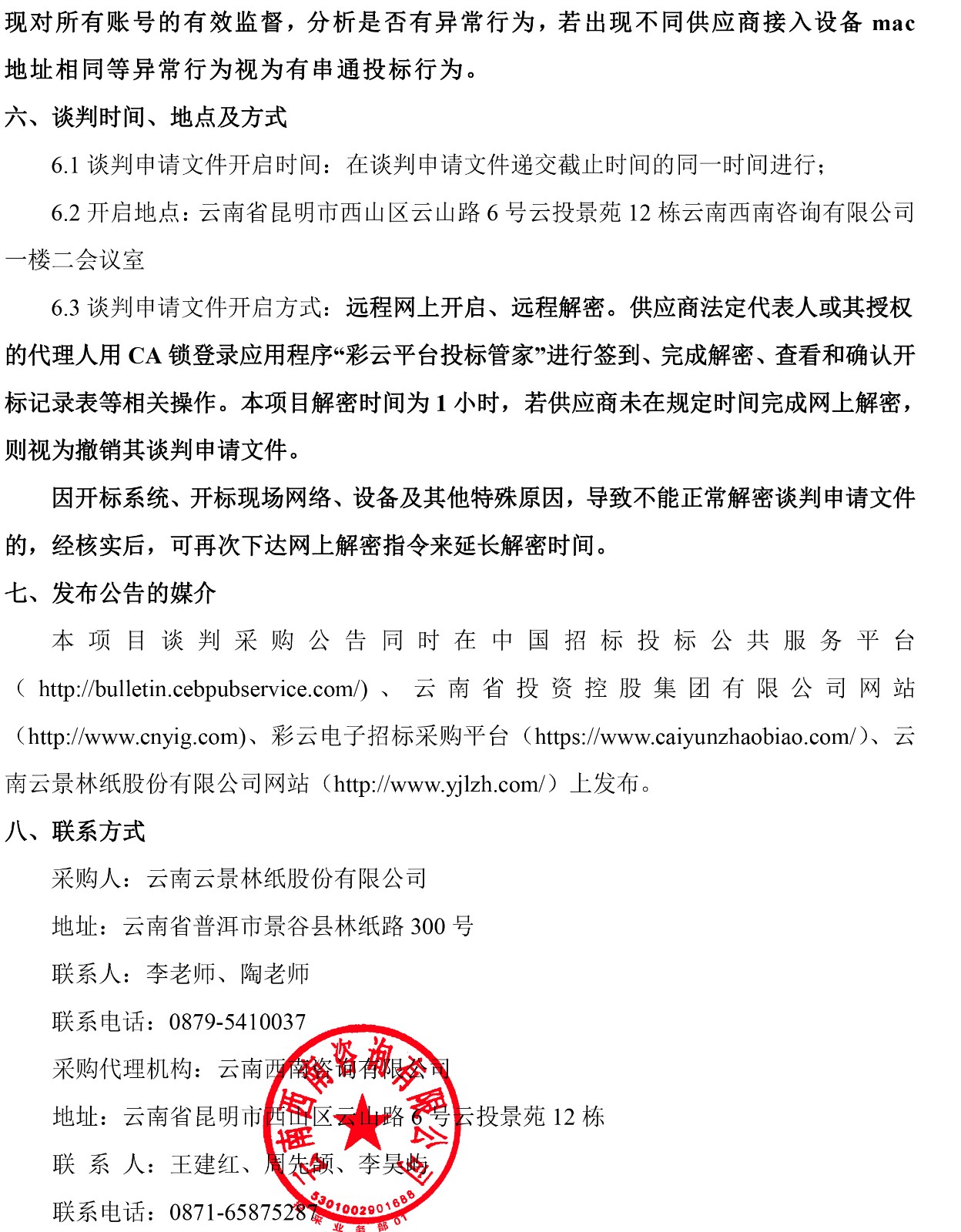 云南云景林紙股份有限公司2025年5#汽輪機大修談判采購公告