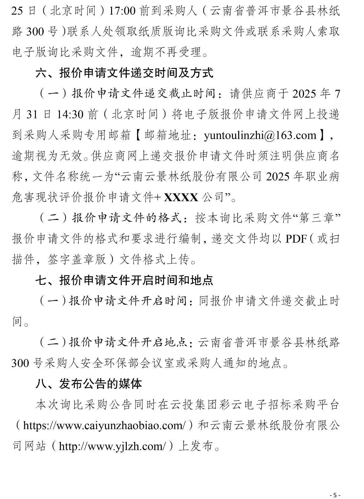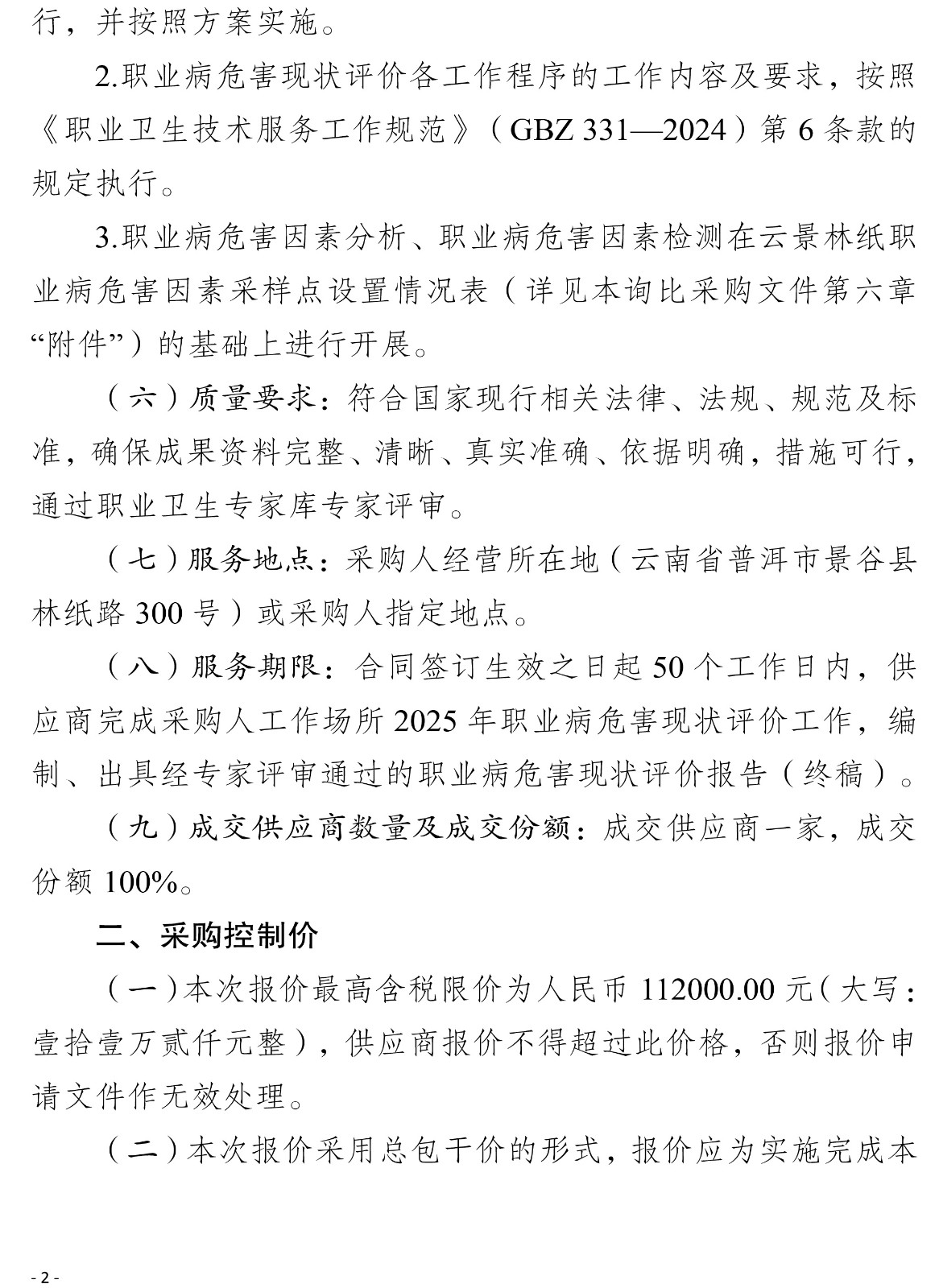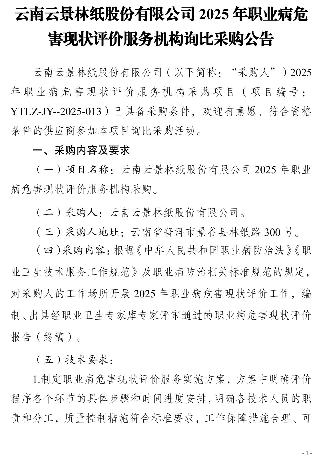 云南云景林紙股份有限公司2025年職業(yè)病危害現(xiàn)狀評(píng)價(jià)服務(wù)機(jī)構(gòu)詢(xún)比采購(gòu)公告