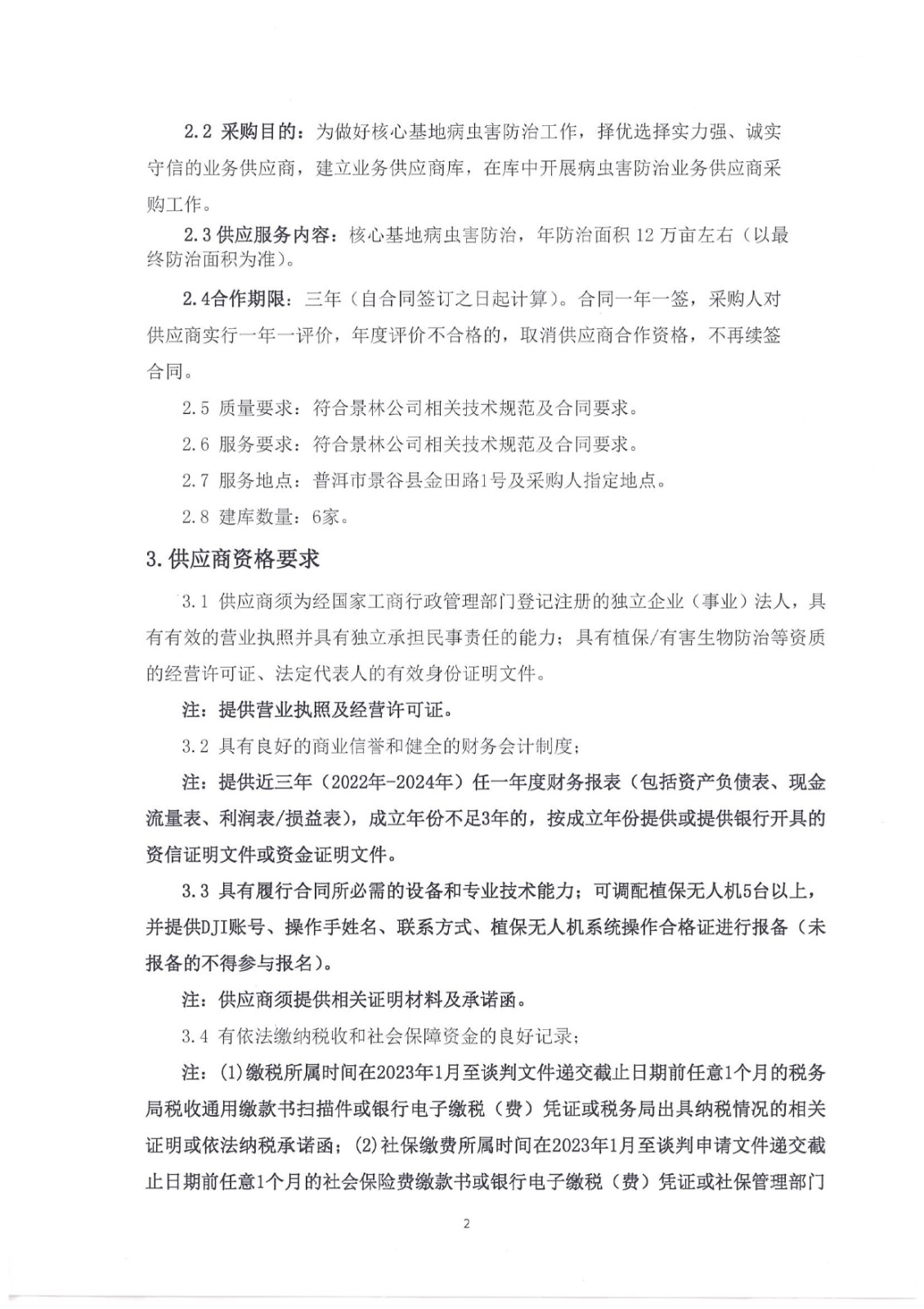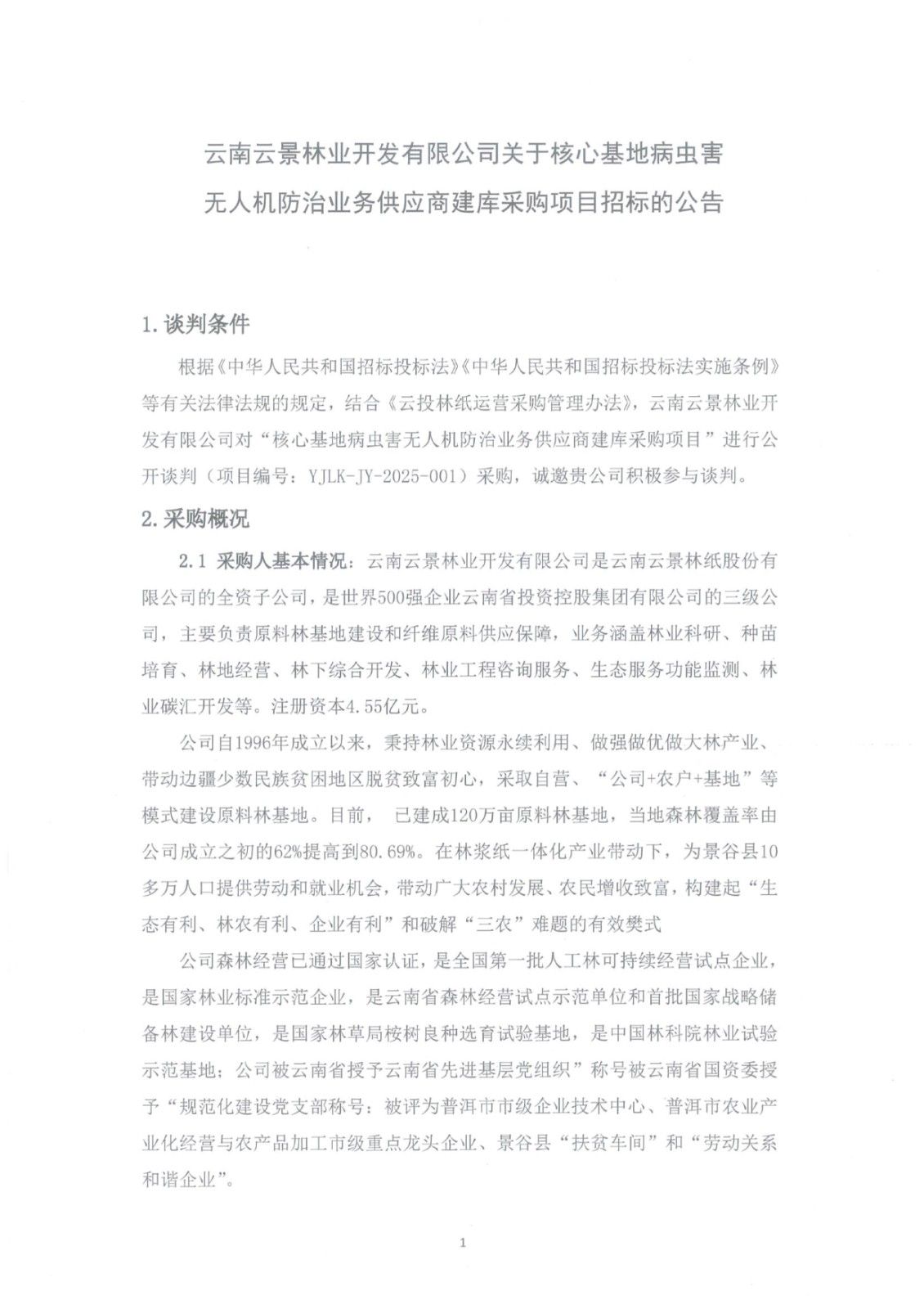 云南云景林業(yè)開發(fā)有限公司關(guān)于核心基地病蟲害無人機防治業(yè)務(wù)供應(yīng)商建庫采購項目招標(biāo)的公告