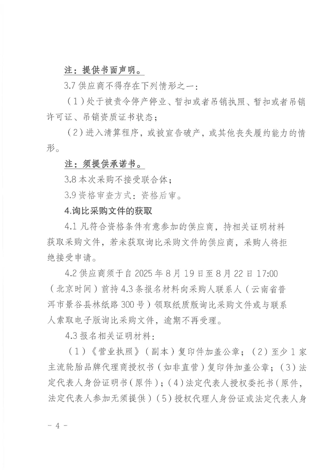 云南云景林紙股份有限公司車輛輪胎采購項目(三次)詢比采購公告