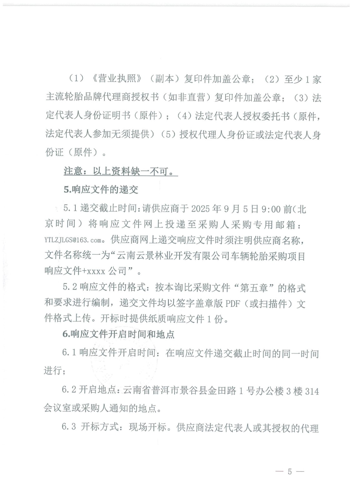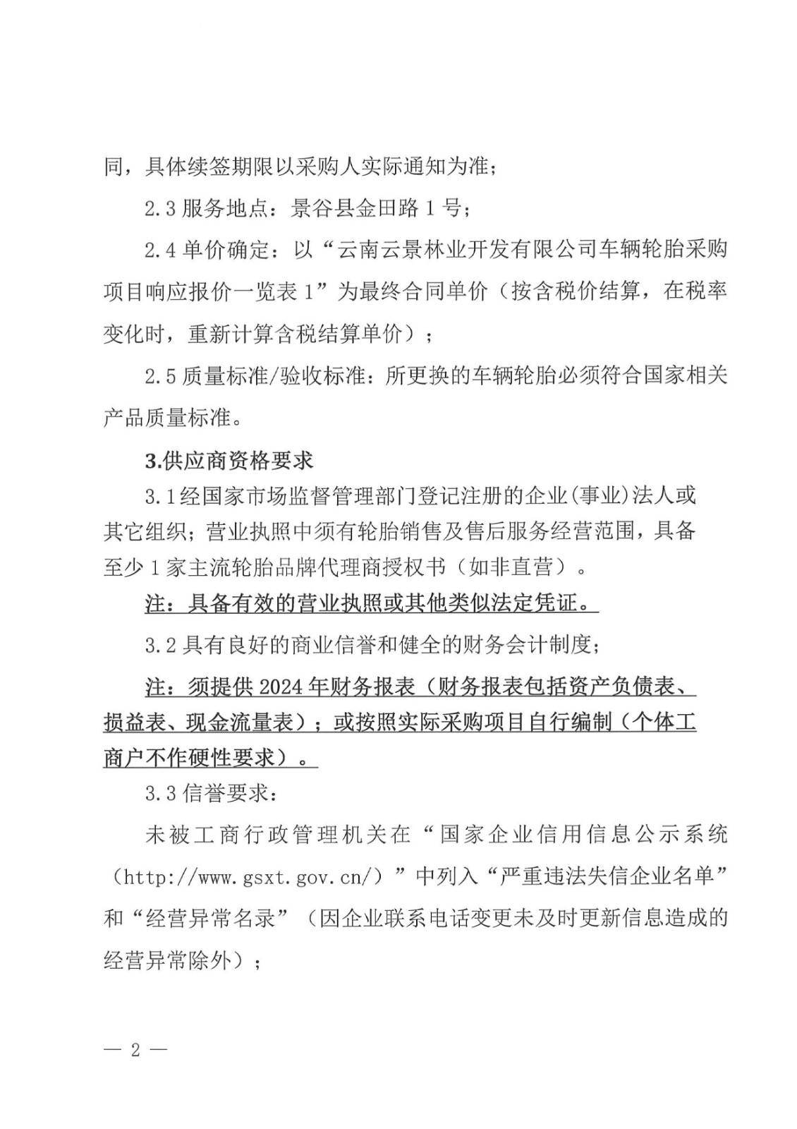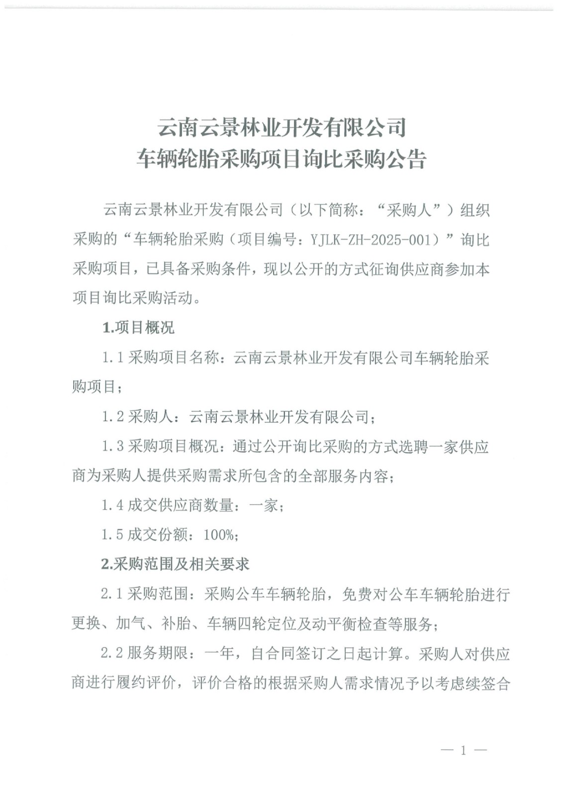 云南云景林業(yè)開發(fā)有限公司車輛輪胎采購項目詢比采購公告