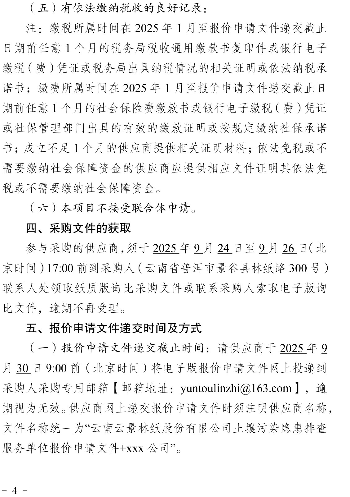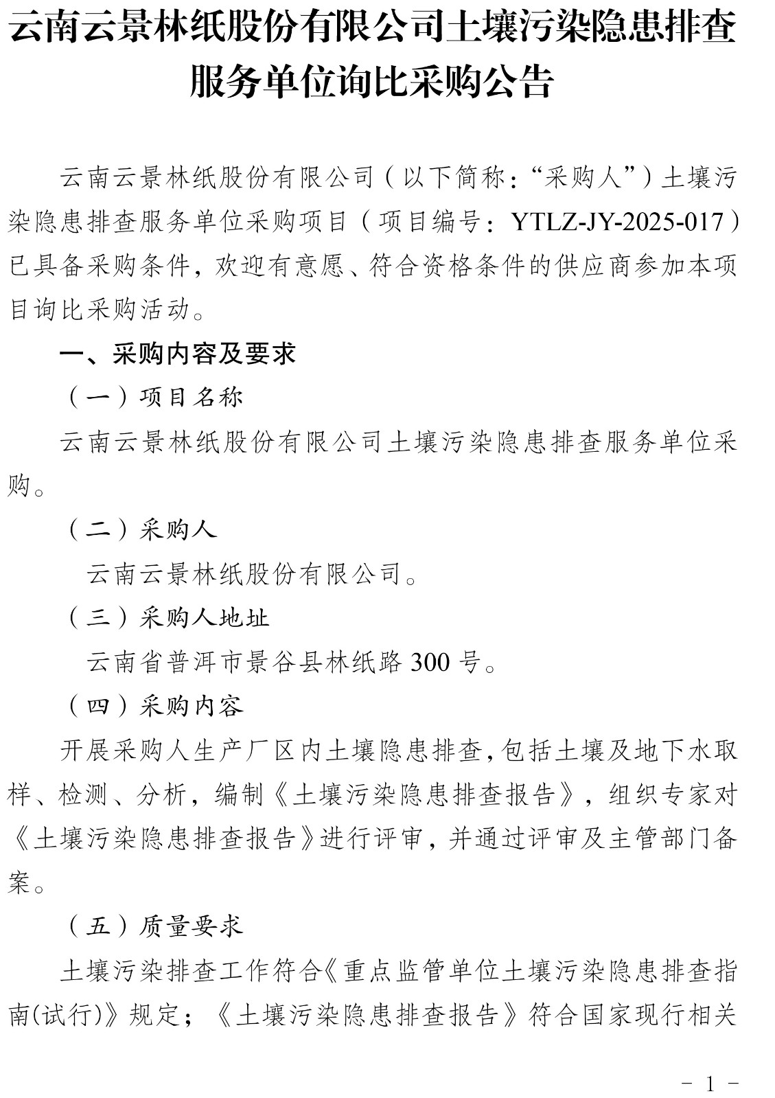 云南云景林紙股份有限公司土壤污染隱患排查服務(wù)單位詢比采購(gòu)公告