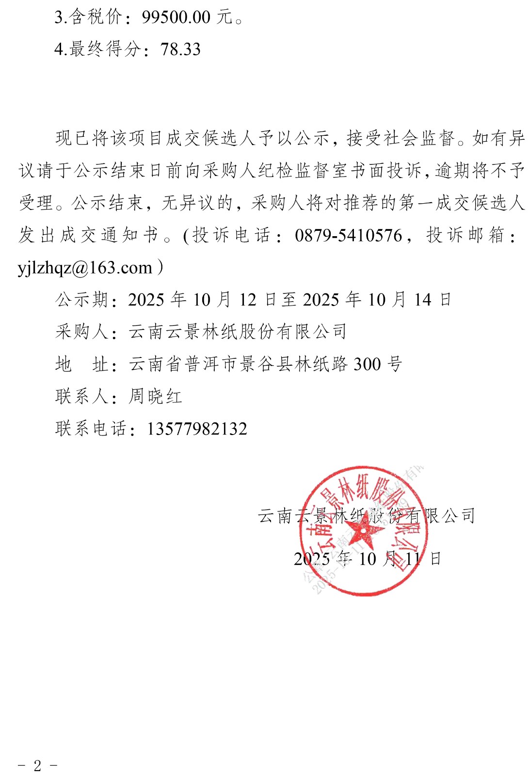 云南云景林紙股份有限公司2026年建構(gòu)筑物維修搶修改造施工中標(biāo)候選人公示