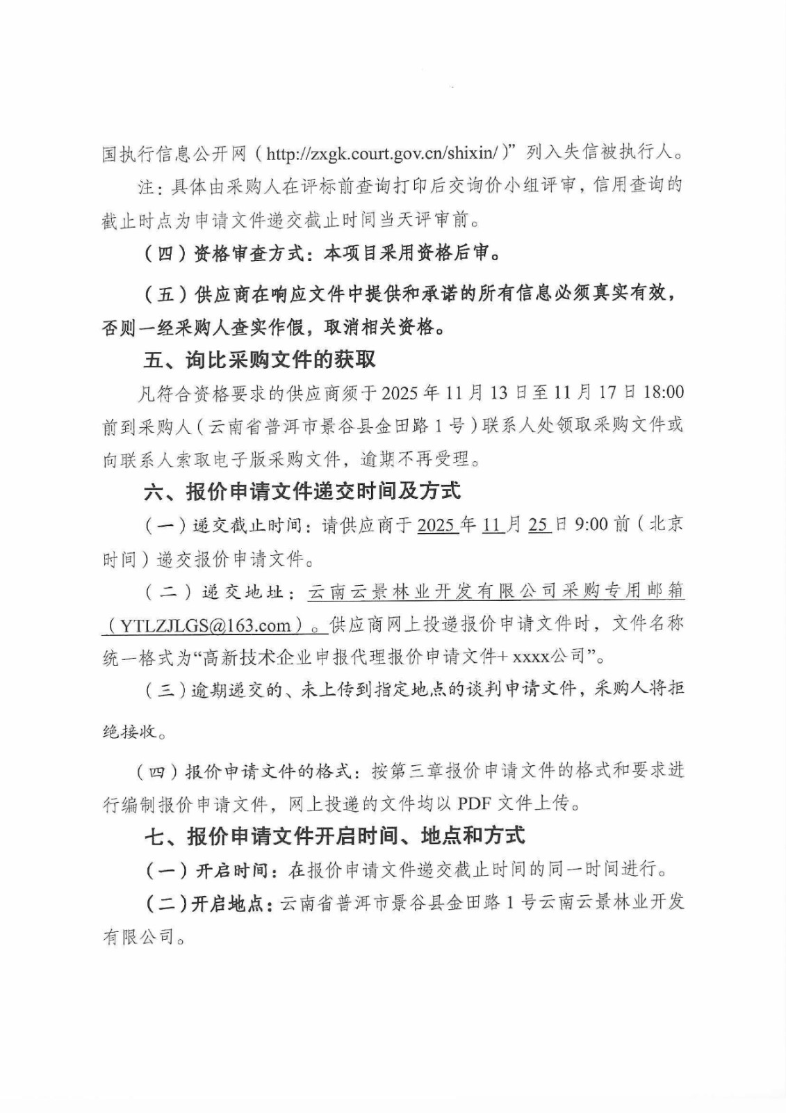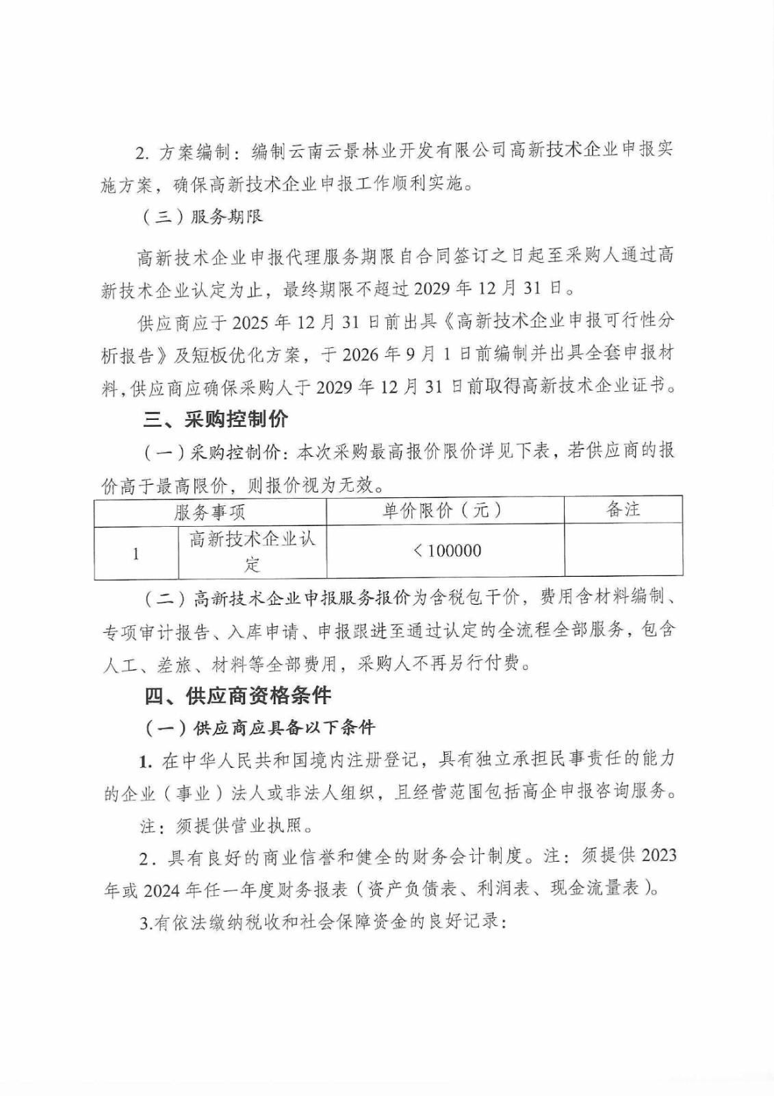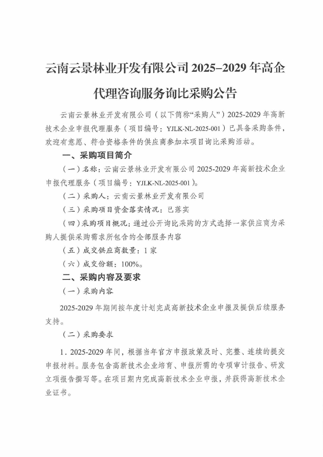 云南云景林業(yè)開發(fā)有限公司2025-2029年高企代理咨詢服務(wù)詢比采購公告