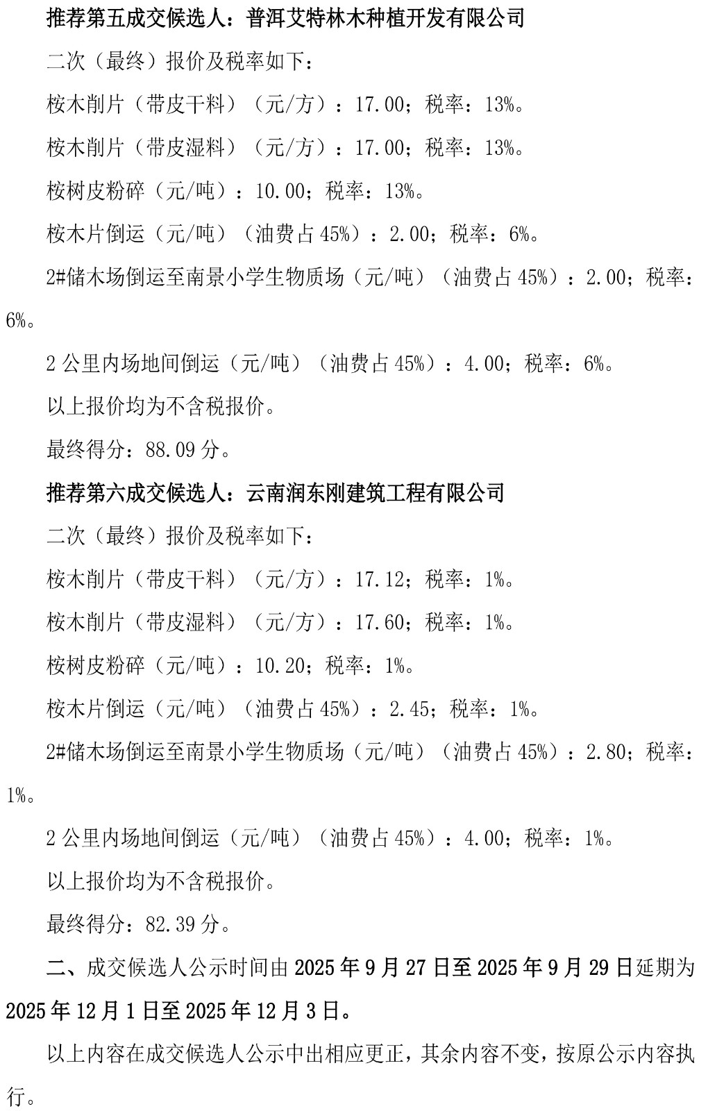 云南云景林紙股份有限公司2025-2029年按木削片倒運(yùn)業(yè)務(wù)外包更正公告