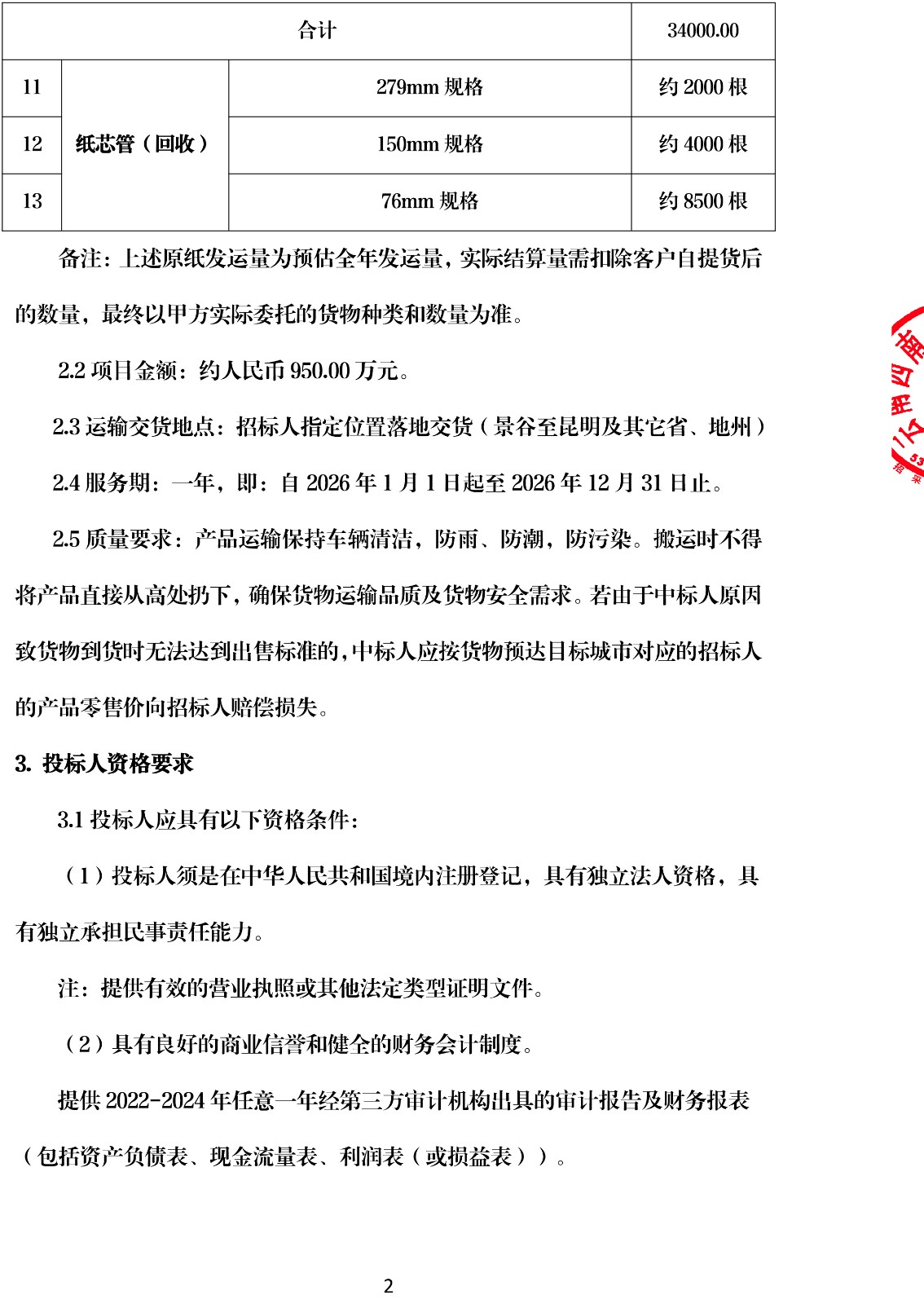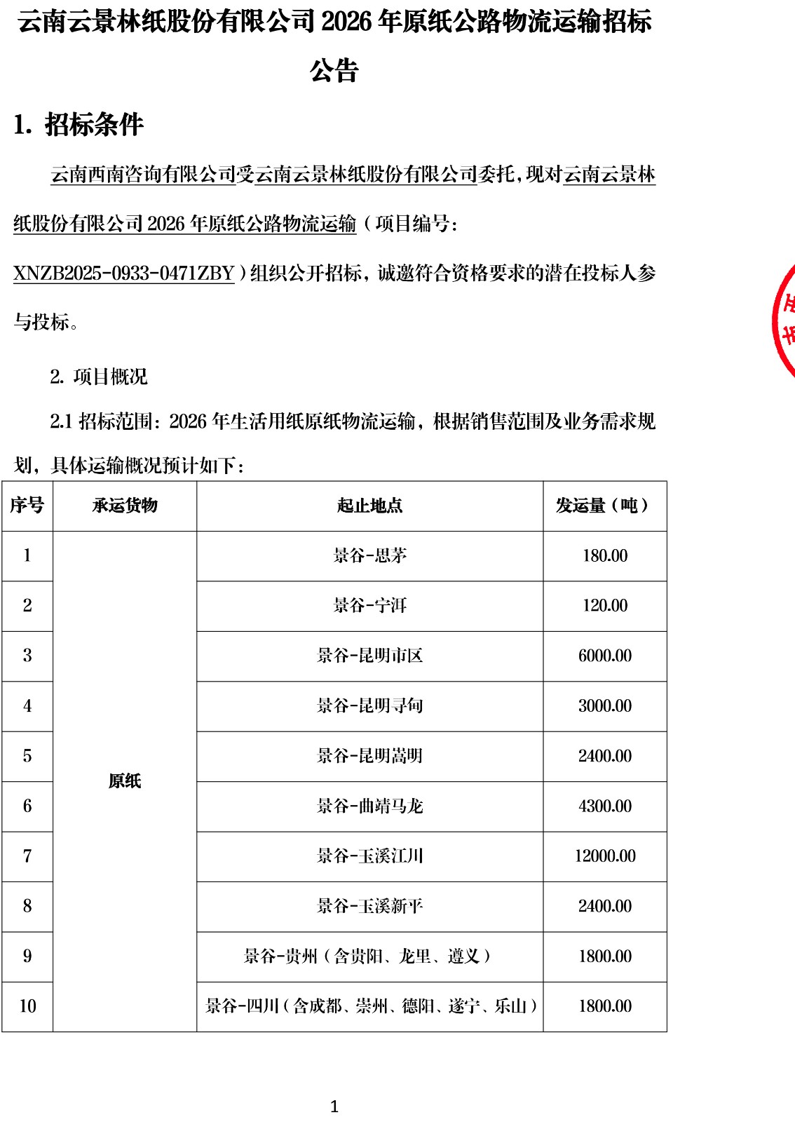 云南云景林紙股份有限公司2026年原紙公路物流運(yùn)輸招標(biāo)公告