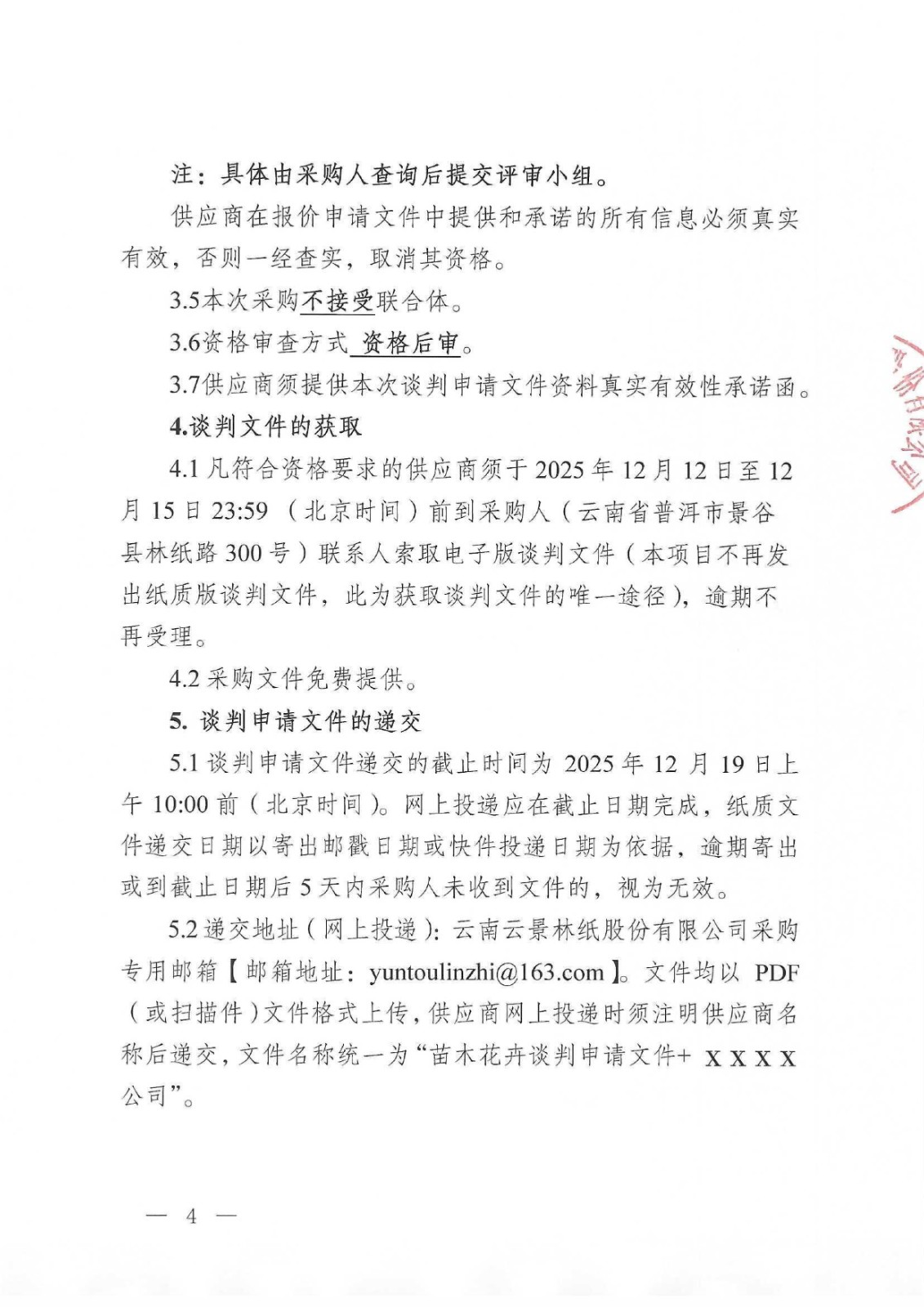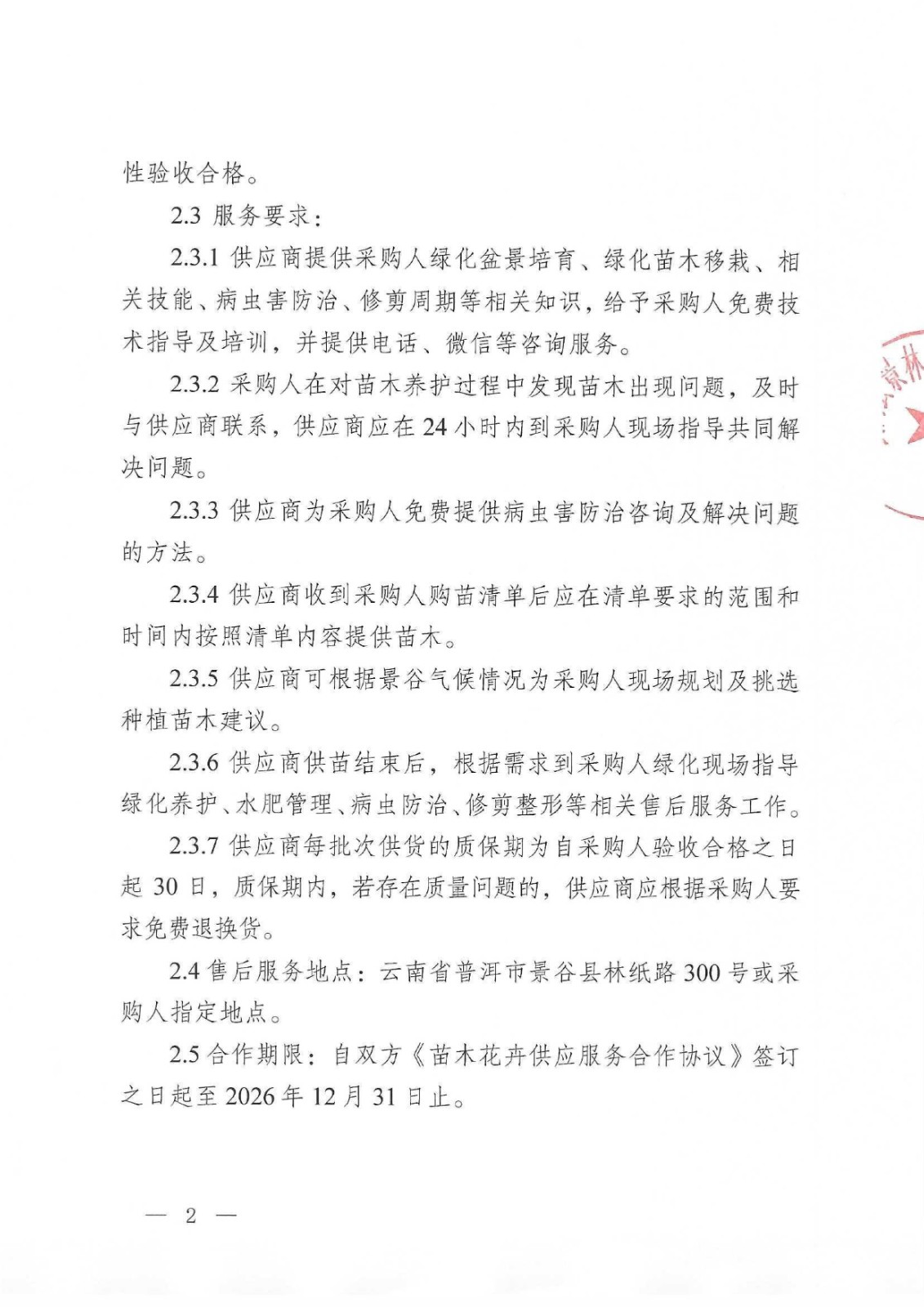 云南云景林紙股份有限公司2026年苗木花卉談判采購公告