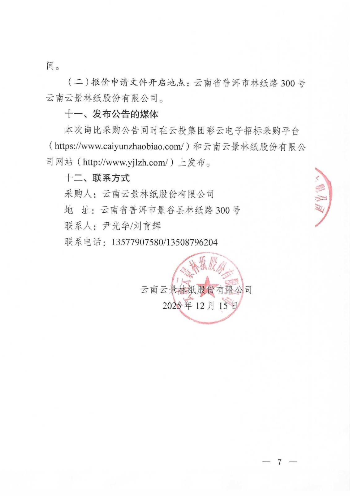 云南云景林紙股份有限公司2026年辦公低值易耗品合格供應服務商人圍談判采購公告