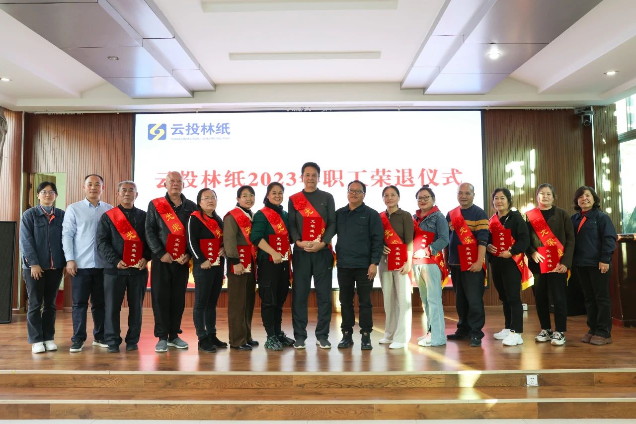 12月29日,云投林紙?jiān)谘懔志频陼?huì)議室為2023年退休的14名職工舉行榮退儀式,充分展現(xiàn)公司對(duì)退休職工的重視關(guān)懷,進(jìn)一步提升退休職工的榮譽(yù)感、幸福感和歸屬感。公司黨委委員、工會(huì)主席李學(xué)鴻參加并主持榮退儀式。